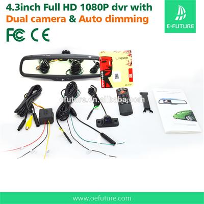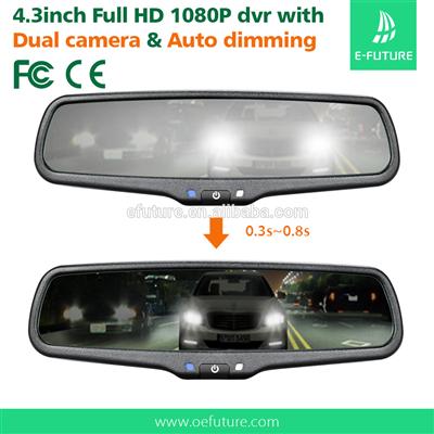 Car Rearview Mirror 1080P 30fps Touch screen 4.3" LCD with G-sensor Night Vision