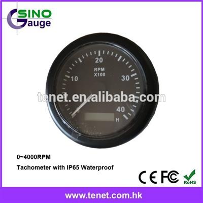 Special electronic Speedometer with Tachometer integrated, with hour meter in LCD display. Mounting hole 85mm, black front & dial, white scale and red pointer.