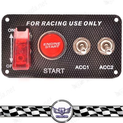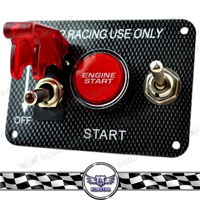 Heavy Duty Carbon Fiber Look Ignition Switch Panel Engine Start Button with Rubber Covered Start Button and Indication Light