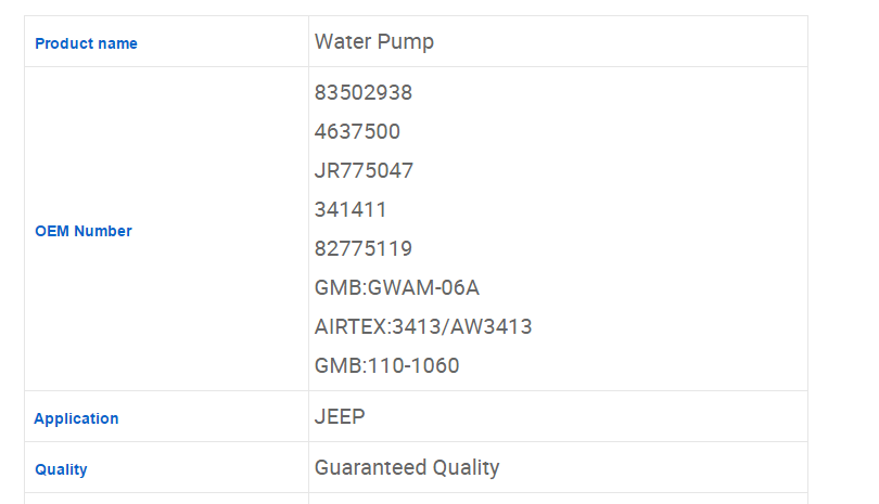 Car Water Pump for Jeep