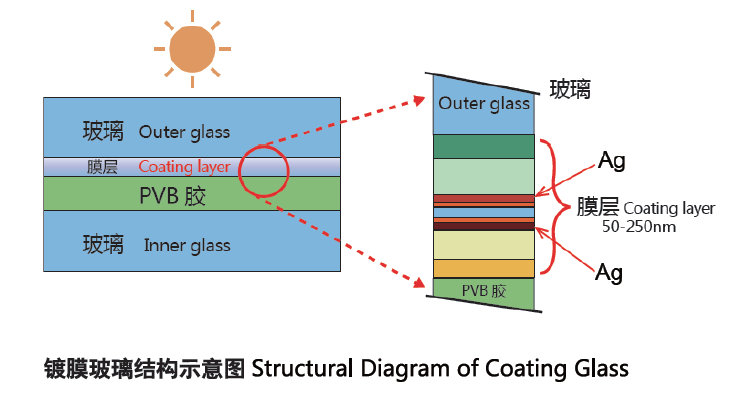 Reflect the solar energy by coating the windscreen with 9 to 20 layers of metal compound films, with a thickness of 50 to 300 nm on the inner surface of glass by vacuum magnetic sputtering technology.