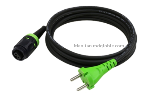 Customer specific locking systems for connectors, plugs and power cords: Mechanical locking parts for cord sets for connecting the electrical appliance with the power cord. Detachable for quick exchange or non-detachable.