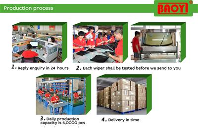 A: Factory size, 6000.0 sqm (65,000.0ft²), we could supply 60,000 pcs wiper blade per day for customers;