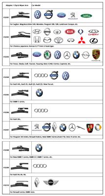 Fit below wiper blade arms 1) U-Hook wiper blade arms: 8.7mm*7mm 2) U- Hook wiper blade arms: 9mm*11mm 3) Side Pin/Side Pin Lock type wiper blade arms 4) Push Button/Pinch Tab type wiper blade arms 5) Bayonet 9mm/Screw type wiper blade arms
