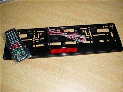 EUROPEAN LED CAR LICENSE PLATE FLASH FRAME Scrolling License Plate Flash Frames are an incredible new accessory for any car! Featuring a lighted, scrolling message display built into a license plate frame. Flash Frames allow you to express yourself while on the road or stuck in traffic. Simply create and enter up to 7 messages (up to 120 characters in length each) using the included wireless remote control. Then select from 5 different scroll speeds. The super-bright LEDs ensure that your message is seen day or night. You can announce to everyone on the road that you? re a fan of your sports team, advertise your business or tell the person behind you they don't know the first thing about safely operating a car! Change the statement as often as you change your mood! Function: 1、You can easily program your message by new control remote. For example,you can find out all characters or numbers on the new control remote and select it directly. 2、It has a brake light function,when the brake light is activated,all LED will be illuminated at same time;when the brake light is switched off,the scroller will display the original message again. attach the grey wire and the red wire to your vehicle’s brake light positive wire that runs to the back light. 3、It can store 7 messages,and display those circular messages 4、The sixth message can move from top to down. 5、You can adjust brightness and speed by our new remote control. 6、We have new fancy packing , it has clamp shell PE box,you can hang and stand our product in your store and show it to your customer. size: 54X16 (cm) Weight: 1000g (absence battery) Display: Display Area: 120x25(mm) Matrix: 7x23 Number of LED: 161 Display Area: 240x25(mm) Matrix: 7x46 Number of LED: 322 Feature: -Can store 7 message, total 120 characters; -With 5 levels of speed to display Packing detail: 28pcs/ctn , carton dimesion:62*42*54/cm Data communication:Input by infrared ray Power Supply: By car LED color:Red, Blue, Green, Pink, White,