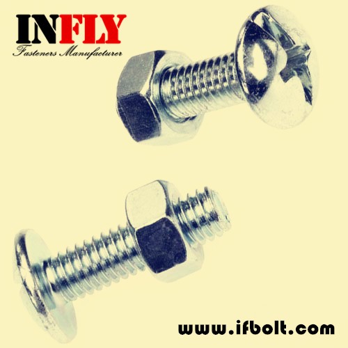 Infly Fasteners is a manufacturers and factory of roofing bolt and mushroom head with slot machine roof screw, we are according to the standard NFE25129,In fact, the roofing bolt also called mushroom head with slot machine screw, because the head is shaped like a roof, so also known as the roof screw, using the general standard have French standard NFE25129, mainly used in wood structure and architectural decoration industry, that together with the hex nuts, square nuts with angle.