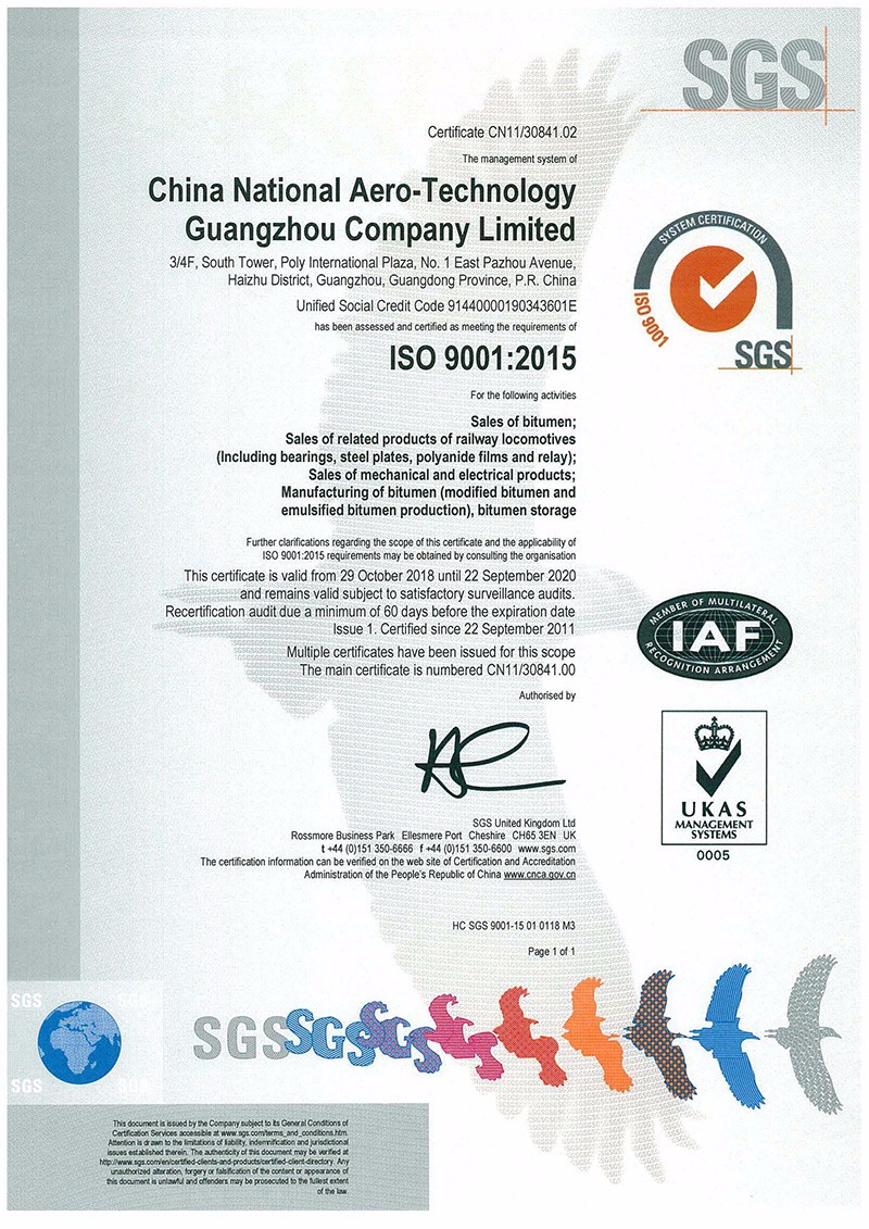 China National Aero-Technology Guangzhou Company Limited (AVIC INTERNATIONAL GUANGZHOU) was set up in 1979 with 300 million CNY as its registered fund. It is the wholly-owned subsidiary of AVIC International Holding Corporation and the important asset of listed companies in Hong Kong. With customers from 5 continents, covering domestic and international markets, AVIC INTL Guangzhou  is a highly professional corporation focusing on bitumen and mechanical & electric products.