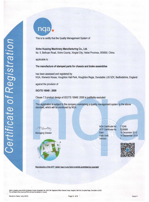 Xinhe.County Huaxing Machinery Manufacturing Co.,Ltd, is located in the Beihuan road ,Xinhe country, Hebei province,covering an area of 55400 square meters. It has more than 500 employees, and includes 150 thchnical professionals. It has mould making, large press, robot welding, surface spraying, machining, spring manufacturing, heat treatment and other production units. Besides, it is known as AA level credit enterprises, Hebei province science and technology enterprises,provincial production safety level 2 standardized production enterprises. Also, it’s tier one suppliers of FAW, Dongfeng, Great Wall Motor, Jianghuai, BAIC new energy and other well-known enterprises.