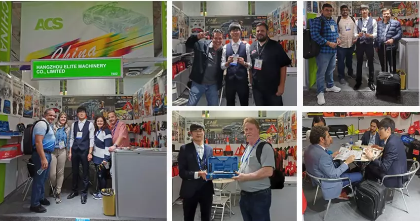 Hangzhou Elite Machinery Co., Limited is located in West Technology Industrial Park, Yuhang Street , Hangzhou; Which has 12 person golden sales team for foreign trade bussiness, we already service for Europe, North America,South America, Middle East Countries and East South Asia; our Main Product is Car Emergency Kit; including: jack and wrench tools, tire inflator, booster cable, tow rope, warning triangle, safety vest and so on.