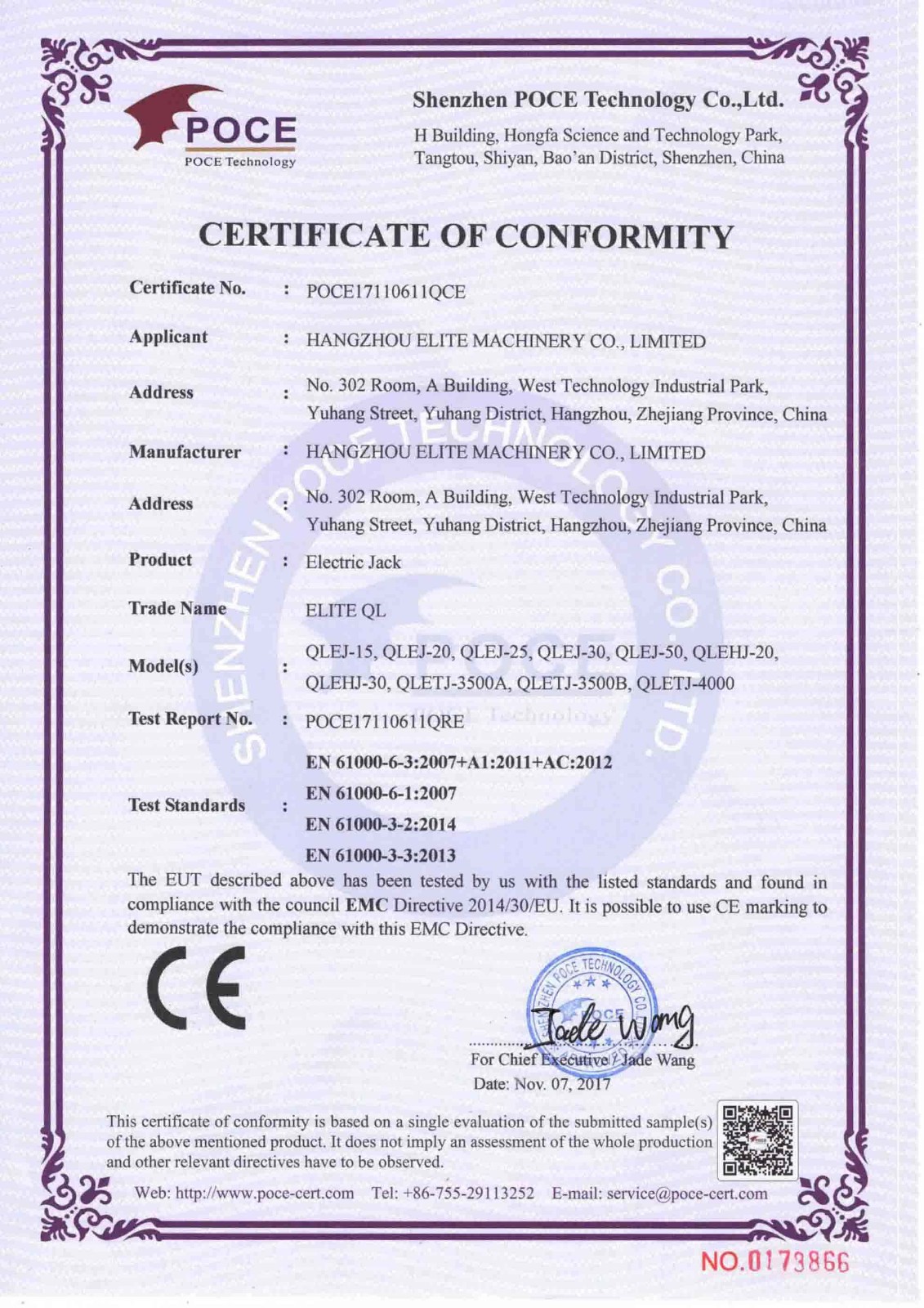 Our Wrench Tool have own CE certificate,and our electric jack have own EMC and CE certificates, Car Tire Inflator have own CE certificate; we have registered two brand logo and get two patent certicates.