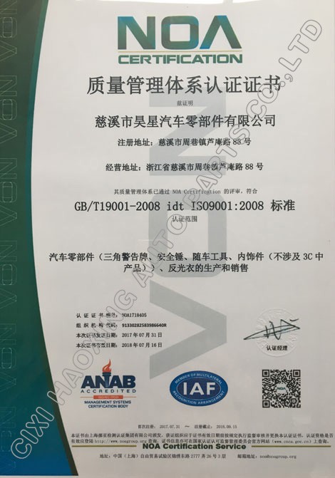 Cixi HaoXing Auto Parts Co.,Ltd.is a manufacturing and exporting factory that specialized in Auto accessories and security and protective spare parts.It is the professional manufacturer of automotive warning triangle and auto safety kits,car ashtray,safety hammer and a series of multi-function security products.,etc.