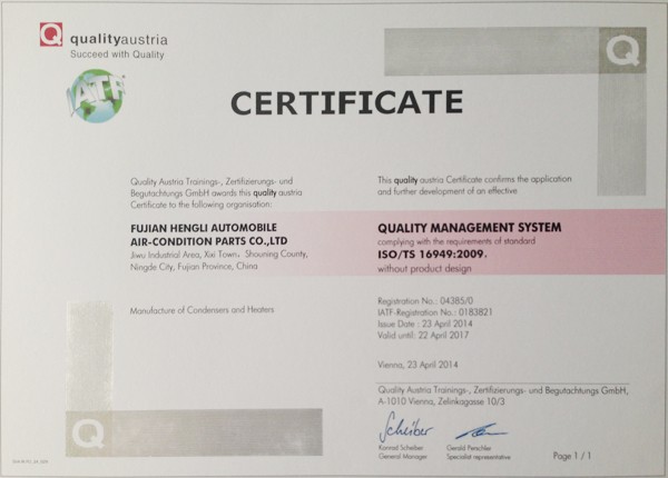 FuJian Hengli Automobile Air-condition Parts Co.,Ltd.,Specialized in producing automobile condensers and heaters,former name is RuiAn Hengli Air-condition Parts CO.,Ltd.,established in 2008.Then wo moved to FuJian in 2013,now our company total occupy 20000m2 ,there are more than 100 workers.Up to now ,for condensers and heaters together wo have more than 1000 types.Every year development capacity is more than 300 types also every year we make more than 600,000 sets condensers and heaters.