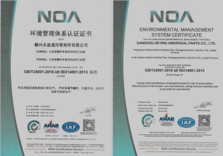Ganzhou Heying Universal Parts Co. Ltd. is professional company in developing, producing and selling precise plastic parts, auto parts, fasteners, standard parts and delicate plastic mold design and manufacture. It is located in Shahe Industry Park, Zhanggong District, Jiangxi Province; with total area of 6000 square meters; it was established and started operation in January 2012. There are 7 departments in Ganzhou Heying Universal Parts Co., Ltd: marketing dept., R&D dept., mold dept., injection dept., assembly dept., QC dept. and personnel administration dpet.; all raw materials used in the products are RoHs and REACH compliance, and it has passed the certificate of ISO9001 and TS16949 certified by SGS in March 2013. Heying has been mainly manufacturing with 26 series products, with more than 5000 kinds of types in total, and it has more than 3000 sets self-developed tooling.Main products:Universal automotive parts: auto clips, car light switch, automobile wire harness, skylight switch, rotary dampers, auto rivet, and automotive dampers, etc. Plastic fasteners and standard parts: plastic screws and nuts, double colored mixer knobs and push buttons, rotary dampers, nylon rivets, plastic book screws, push door latches, silver and gold stamping foot pads, and all sorts of electric appliance foot pads, etc.
