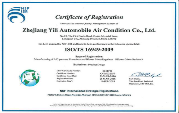 Zhejiang YILI Automobile Air Condition Co. Ltd is located in the city of celadon & sword ,southwest of Zhejiang natural oxygen bar,is also Chinese automotive air conditioning parts production base - Longquan city Zhejiang Province.The company was established in 1997, is committed to R&D, production, sales integration development of automotive air conditioning parts .The main products are resistance, fan control module and the electronic sensor. Cooperate With some well-known domestic blowers, electronic fan manufacturers, and R&D corresponding speed module for them and form the industrialization. Our products are exported to Europe , America and other regions.