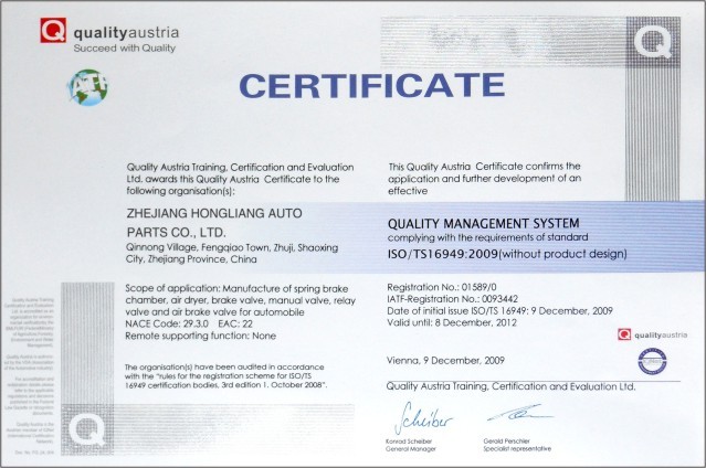 Zhejiang Hongliang Auto Parts Co.,Ltd is located in Fengqiao Industrial Zone, Zhuji,Zhejiang,China. It established in 1996,which is a professional maufac-turing of European auto spare parts,It covers an area of about 15,000 square meters,serving more than 100 employees,manufacturing of European auto spare parts.It covers an area of about 15,000 square maters,serving more than 100 employess.Our company primarily engages in development,proudc-tion ,sales of the brake valves,boosters,brake chambers.