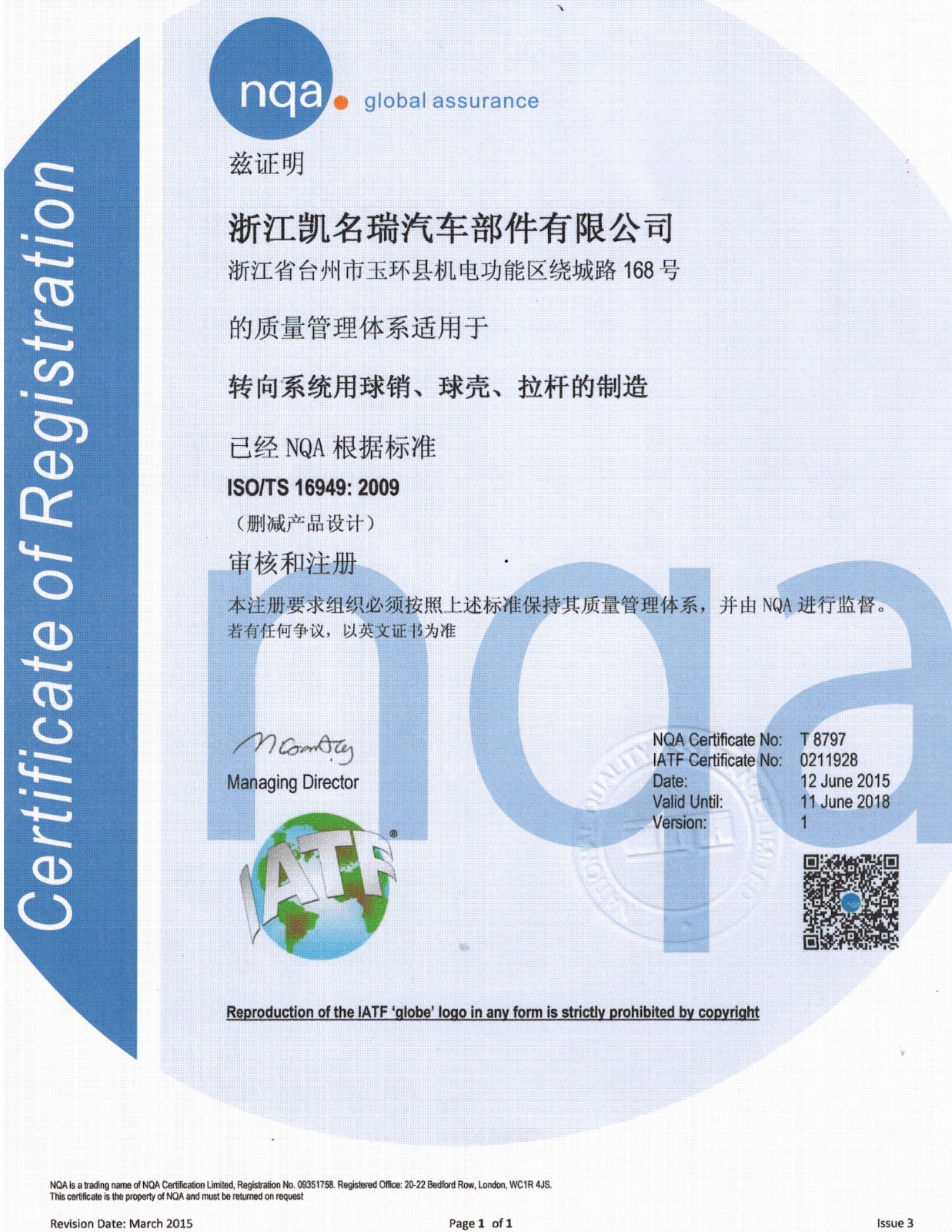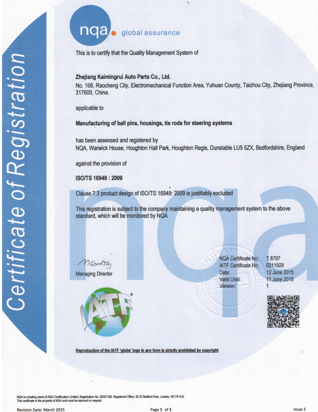 ZHEJIANG KAIMINRUI AUTO PARTS CO.,LTD located in the beautiful and rich in the sea coast - Yuhuan, north depends on Ningbo, Shanghai, south of Wenzhou, land and water transportation is convenient. Through its unremitting efforts and the overall market environment under the influence, the rapid development of enterprises, become the representative of the new enterprises, inject youth and vigor for the auto parts industry.