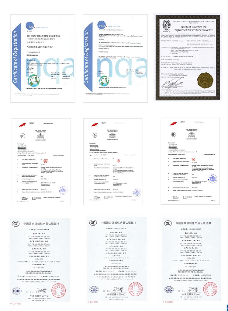 Established in 1992, Jiangmen Shongli Rearview Mirror Industrial Company is a professional producer of vehicle parts, excelling in rearview mirrors, LED lightings and wiper blades. Over twenty years of development enriches us with experience and resources that ensure product quality and services and make us one of the most reliable suppliers in China. We support over 20 famous heavy vehicle manufacturers in China and many more overseas via importers. And on the spear part market, our two brands, “SL” and “Shiliduo”, cover 20% shares in China. As a national approved new-and-high tech enterprise, and provincial rearview mirror research center, we underline technology and engineering. On the 30000 square meters campus we have 4 labs, 1 R&D centers, 40 engineers, 9 different workshops and over 30 production lines. We have 23 patents and our products are accredited with E-Mark or DOT certificate. In September 2018,our wiper blades past ARDL test and marks level 8 in induration test.