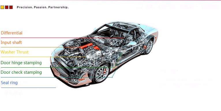 I set the company market development, product design, mold design, production and sales, the main products are: differential assembly, the planetary gear gaskets, axle pad, input shaft assembly, car door hinge series stampings, door stopper series stamping parts, seals, copper and various pieces of precision stampings, wherein the planetary gear spacer processing technology first in China.