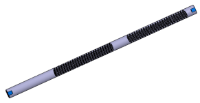 1.齿条两端各有旋向不同的两种齿形 2.齿条直径26mm,长584mm,重约2.1Kg 3.齿根导电淬火,硬度55~59HRC, 齿背导电淬火,硬度≥45HRC 4.材料为S45SC JIS G 4051