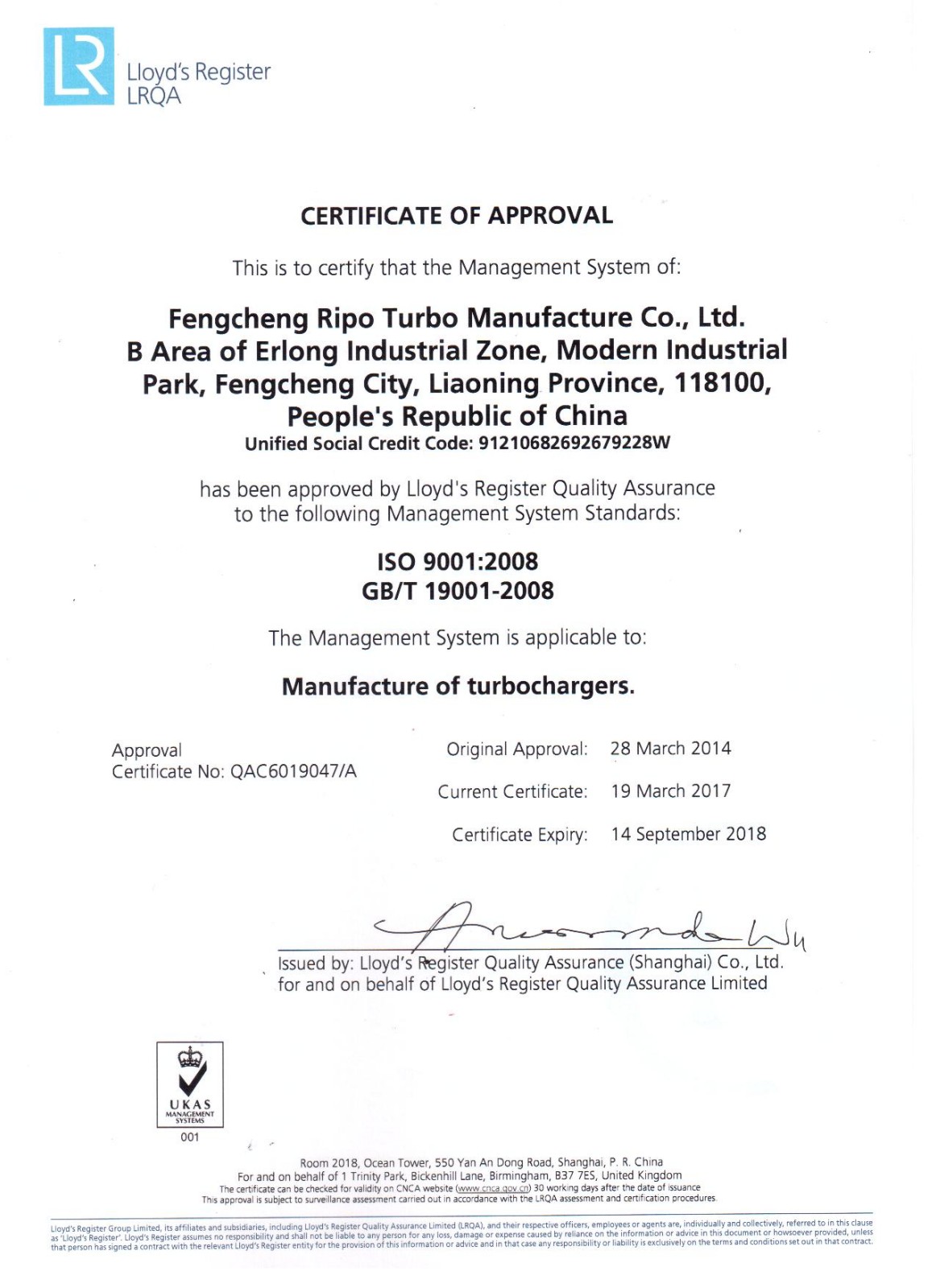 Fengcheng RIPO Turbo Manufacture Co., Ltd is a professional manufacturer of researching and developing turbochargers and turbo parts. High-top investments, high-precision equipments, high-quality staffs make up a comprehensive company structure in developing, producing, marketing and servicing. The main products are in more than 500 models, can suit for all kinds of vehicles, vessels, engineering machineries and generators . The products have been well sold all over the world , such as America, Russia, Korea, Iraq, Turkey, India, Pakistan, Dubai and got favourable comments from users. We are keeping in developing new products, make the efforts to guarantee designing materials, processing machineries conform to original designs. We can also process products follow buyers’ samples, the construction period is about 30 days.