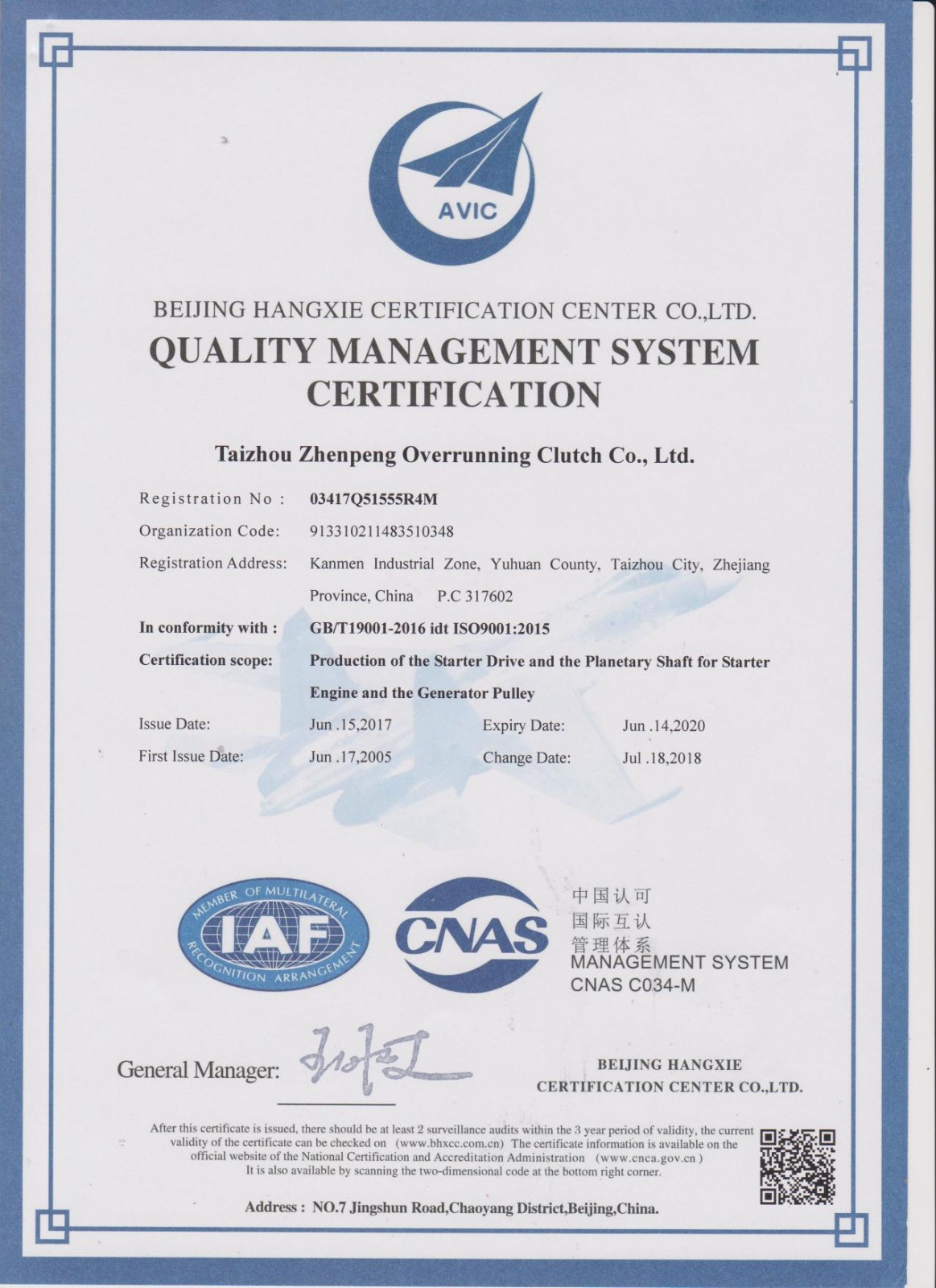 Taizhou Zhenpeng Overrunning Clutch Co.,Ltd. is a joint-stock company specializing in automobile starter drive and overrunning alternator pulley, combined R&D and production. It possesses of a new products developing team, advanced detecting equipment and modern scientific management mode.