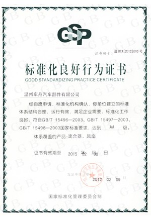 We have passed ISO16949: 2009 international quality system certification, ISO14001: 2004 environmental management system certification and OHSA18001: 2001 occupational health and safety management system certification. We have won honors such as national high-tech enterprise, Zhejiang’s patent model enterprise, Class A customs-administered enterprise, Wenzhou’s famous product, Wenzhou’s famous export brand and bank-rated 3A enterprise.