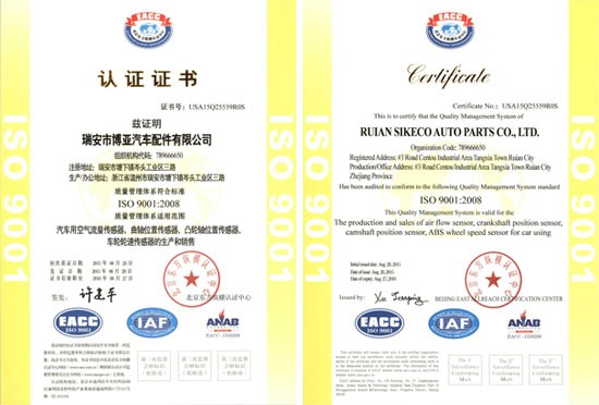 We, SIKECO Auto Part Co., Ltd., located in Ruian city, the manufacture base of auto spare parts, are producing, developing, exporting high quality auto sensors in China.
