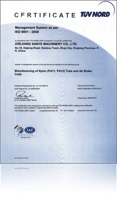 The company now yearly produces more than 20 million sets of air hose copper connectors, nylon tube, nylon tube assembly and rubber hose assembly. It has become a partner of major domestic heavy car main engine plants for more than 20 years, and the sole designated supplier of certain products for these main engine plants. The products are exported to Europe, America, Southeast Asia, Middle East and other countries and regions.