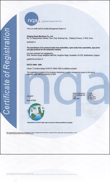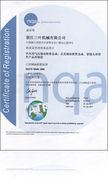 The company has successively passed the ISO9001: 2008, IS014001: 2004, ISO/TS16949: 2009 and the national automotive products 3C compulsory certification, and the brake hose series has passed the U.S. Department of Transportation DOT certification, the production strictly follows the quality requirements of each system to guarantee the quality.