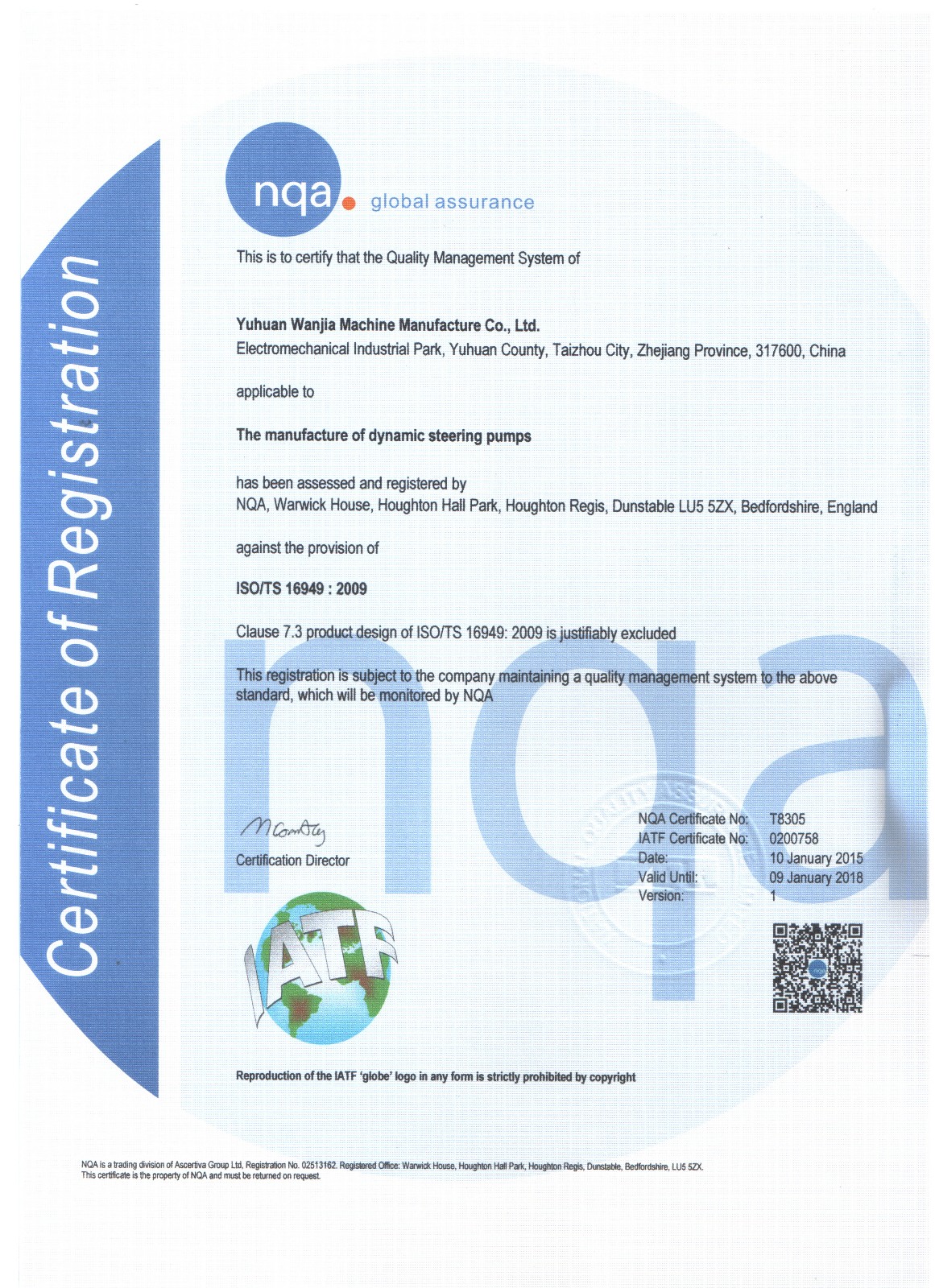 Yuhuan Wanjia Machine Manufacture Co., Ltd is a manufacturer whos specialized in Power Steering Pump producing. We started to develop and produce automobile Power Steering Pump from 2000. We have bought some high technique CNC machines, which ensure products’ quality and stability. We already develop more items for middle and small automobile. In accordance with the technical standard of national automobile industry: QC/T299-2000.
