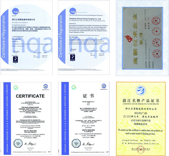 The company has obtained TUV quality system :IATF 16949, ISO 9001, Environmental management system :ISO 14001, Occupational Health and safety Management system :ISO 45001, Measurement Management system: ISO 10012 "Measurement Management System - Requirements for Measuring processes and measuring equipment" standard requirements, has been assessed as a provincial technology research and development center, high-tech enterprises in Zhejiang Province, and has the right to import and export.