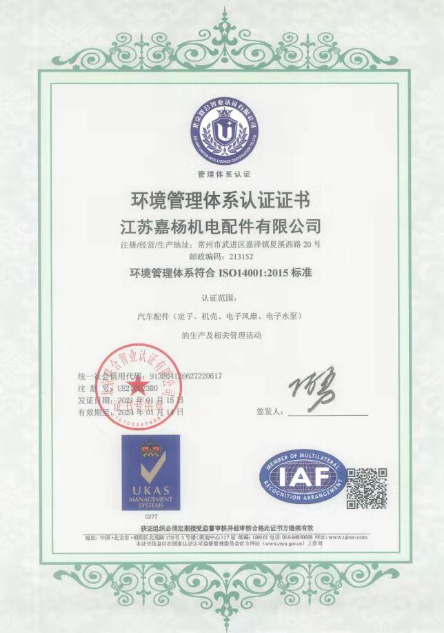 JiaYang is specialized in producing all kinds of auto parts.We are also provincial high-tech enterprises.Our factory covers an area of 25000 square meters with a registered capital of 800 thousand US dollar.We have more than 170 employees, including more than twenty R&D and technical personnel.We had set up R&D centers in Changzhou and Shanghai respectively.The company's main products are Automobile Starting Motor Parts,Automotive Coolant System Parts,Automotive electronic parts etc. We have more than 30 years of auto parts manufacturing experience.The company has passed IATF16949 Quality Management System Certification.