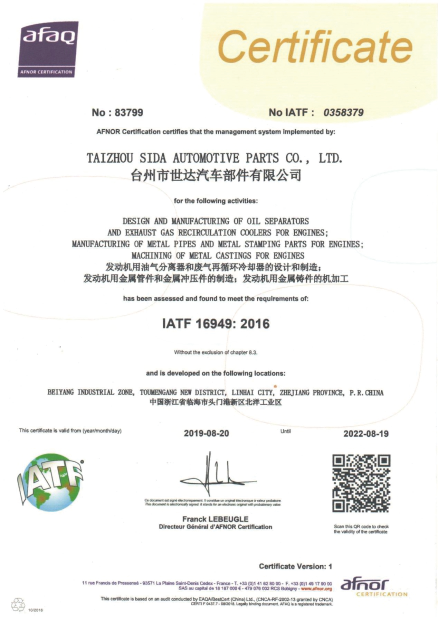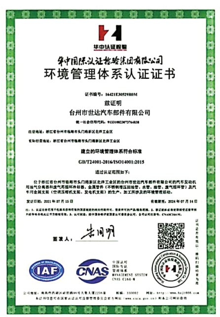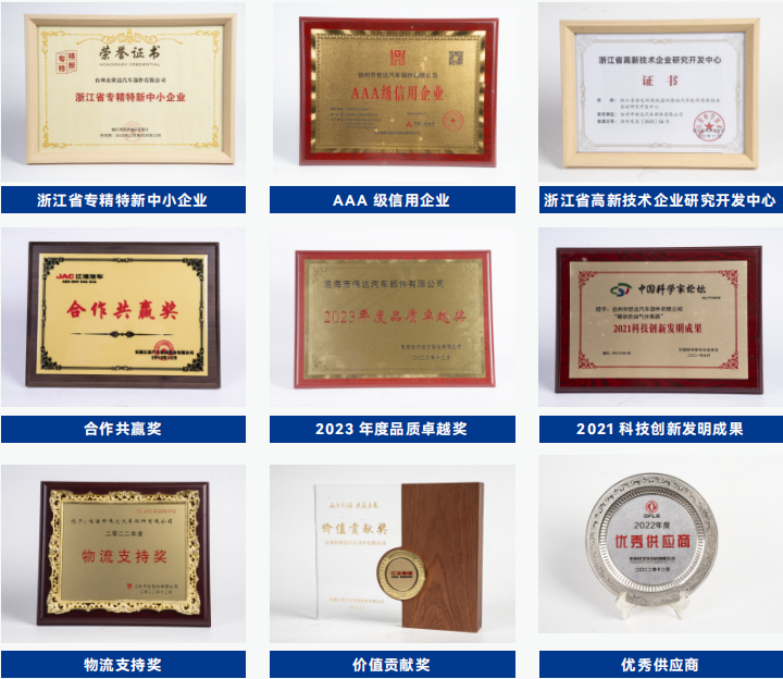 Taizhou Shida Auto Pars Co., Ltd. Is A Key Cultivation Enterprise For Growth-oriented Small And Medium-sized Enterprises In Zhejiang Province, One Of The Top 50 Enterprises In Linhai City, A Clean Production Enterprise In Taizhou City, And A High-tech Enterprise In Taizhou City. The Company Attaches Great Imporance To Personnel Training And Product Development. It Has Long-term Cooperation With Domestic And Foreign Automakers And Universities. It Has First-class Experimental Testing Equipment And Obtained National Invention Patents. It Has Established A "Weida R&d Center" In The Pioneer Park Of Zhejiang University In Hangzhou. The Company Has Passed Ts16949 International Quality System Cerifcation And Iso14001 System Cerifcation.