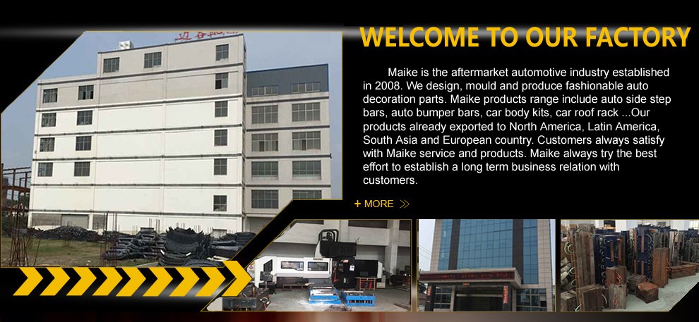 Guangzhou Maike Auto Accessories Co., Ltd. is one of the leading companies integrating car accessories development, production and distribution. With advanced designing, molding, and testing procedures, we have passed the evaluation of ISO9001 quality management system. We have an R&D department, a factory, and a full set of manufacture equipment. Headquartered in Guangzhou City, China, Maike provide tuning and styling accessories, such as stainless steel bumping parts, side steps, grille guards, roof racks, chrome parts, muffler tips, door mirror covers, dashboard kits, license plate frames, mudguards, and van spare parts. Our goal is to try our best to achieve customers' satisfaction. Persisting in excellent quality and fulfilling promise, we have long-term customers in all over the word. And we will devote to offer more high quality products and better services. Maike is always your reliable partner!