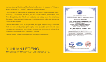 Our company is specialized in developing and producing chassis parts. including Control Arm,Ball Joint,Tie Rod End, Rack End,Pitman Arm, Idler Arm,Drag Link,etc. All of our products are widely used for American,European,Japanese and Korean cars,mainly exported to Europe & America countries and regions.