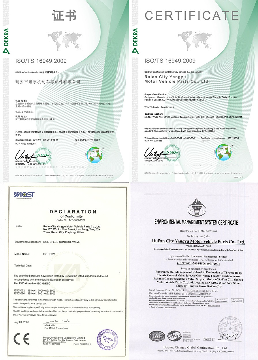 Ruian Yangyu Auto Parts Co., Ltd. is located in Zhejiang Ruian, the capital of auto parts in China. Founded in 1993, the company covers an area of more than 4500 square meters and a building area of more than 10000 square meters. It is an enterprise integrating research and development, production and trade. The company mainly produces automobile throttle position sensor, idle speed controller, exhaust gas recirculation valve, throttle body.