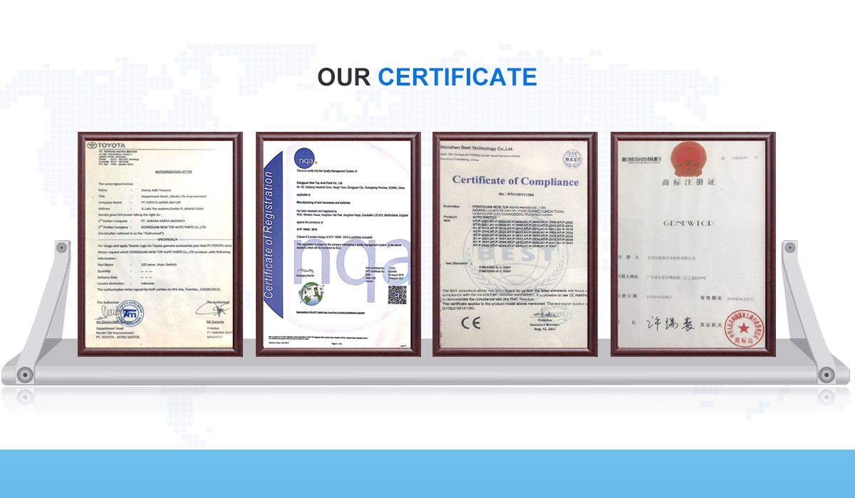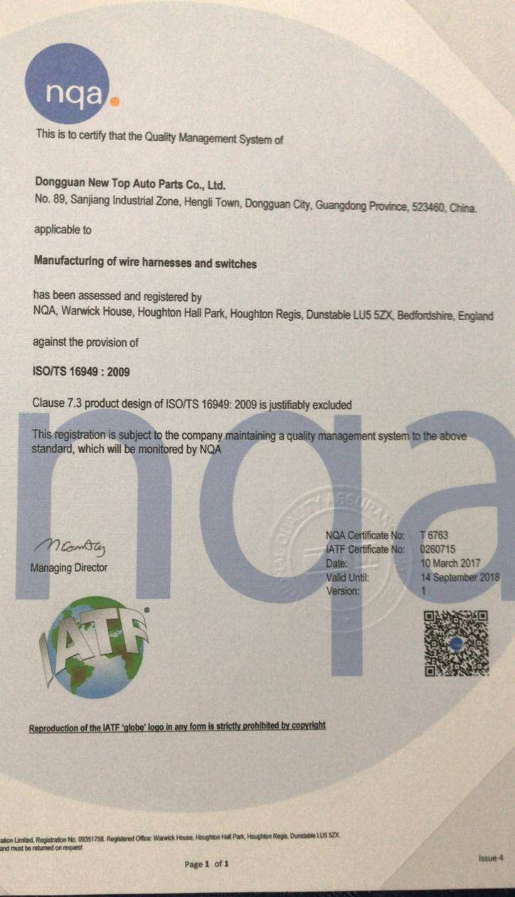 Established in 1998, Dongguan New Top Electrical Wire company has a predecessor of Dongguan New Top Auto Parts Co., Ltd. In 2010 we have enlarged our business to HK and open a new company, HK New Top (Industry) Co.,Ltd. We specialize in various kinds of auto switches, auto wires harness, automotive connectors, LED brake lights and anti-fog lights which are used in domestic and foreign cars. We also produce commercial vehicles with stereo, anti-stealing HID lights, non-standard electric wires and electronic wires which are used for digital cameras, small electrical appliances and computers. Our products passed the evaluations of UL and CSA certifications. Our company covers an area of 4,000 square meters and there are more than 200 employees. Most of our production equipment and testing equipment are sourced from Japan, Germany and Taiwan area. Innovation is the key point during our development. There are more than 10 professional researchers in research and development department, 5 persons in overseas marketing department and quality control department. Our main markets are not only mainland China, but also the USA, the UK