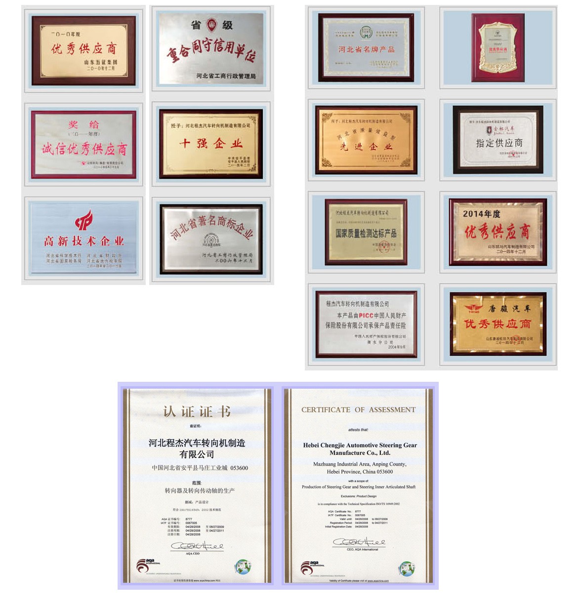 Hebei Chengjie Automobile Steering Machine Manufacturing Co., Ltd. was established in 1996. It is a large company specializing in R&D, production and sales of automotive steering systems. The company is a member of the China Association of Automobile Manufacturers and has turned to the industry association. It has passed the TS16949 quality management system. The company is located in the Mazhuang Industrial Development Zone of Anping County, the hometown of Chinese wire mesh. It covers an area of 181 acres and has office buildings, staff restaurants, apartments and plantations. The north side of the company is the operation workshop, including the machining workshop (three), the mechanical assembly workshop, the power assembly workshop, the transmission workshop, the painting workshop, the heat treatment center and the logistics transit warehouse. Cheng Jie uses the latest production management system - lean production system, which mainly includes power valve body line, power assembly line, power nut line and power valve core line. It has domestic first-class production equipment and testing instruments; imported high-precision machine tools from Japan and Germany, and internal and external grinding machines; it has its own R&D team and has strong development and production capacity. It will form an annual production capacity of 1 million sets of commercial vehicles and passenger car steering gears and 500,000 sets of steering column.