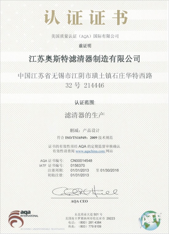 Jiangsu OST filter manufacturing co., LTD. Is an enterprise integrating the research and development and large-scale production of filters. The factory covers an area of more than 57,000 square meters with an annual production capacity of more than 50 million pieces. Strong technical force, with a professional R& D team and perfect experimental testing equipment.Oster closely tracks the development of the market, constantly launched new products, the use of advanced product design software, and the implementation of network information management.