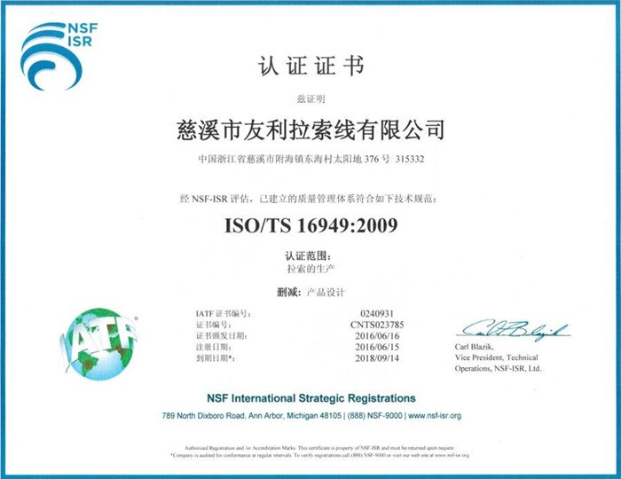 The company is mainly engaged in the production of auto cables. At the beginning of 2005, the company passed the certification of GB/T19001-2000 idt ISO9001:2000 Quality Management System. It conducts strict quality management and cost control from mold development and spare part production to assembly, laying solid foundation for providing extremely competitive products for you.