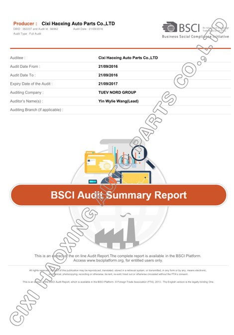 Cixi HaoXing Auto Parts Co.,Ltd.is located in Cixi City,Zhejiang province,China,which is close to Shanghai,Our spirit is customer first,good quality and "satisfactory service "to develop the market.
