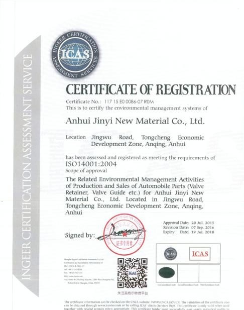 Anhui Jinyi Company is the manufacturing industry key enterprises in Anhui, Which has been the test base of SICERI for valve guide and valve seat, are detected by IS0/TS16949 quality system certification, and cooperated with “211 and 985”university to research the technology, with a strong technological advantage. Company material intergrated BLEISTAHL, FEDERAL-MOGUL and TPR ‘s material superiority, based on imported material from European, company created high-performance products which instead of imported goods.
