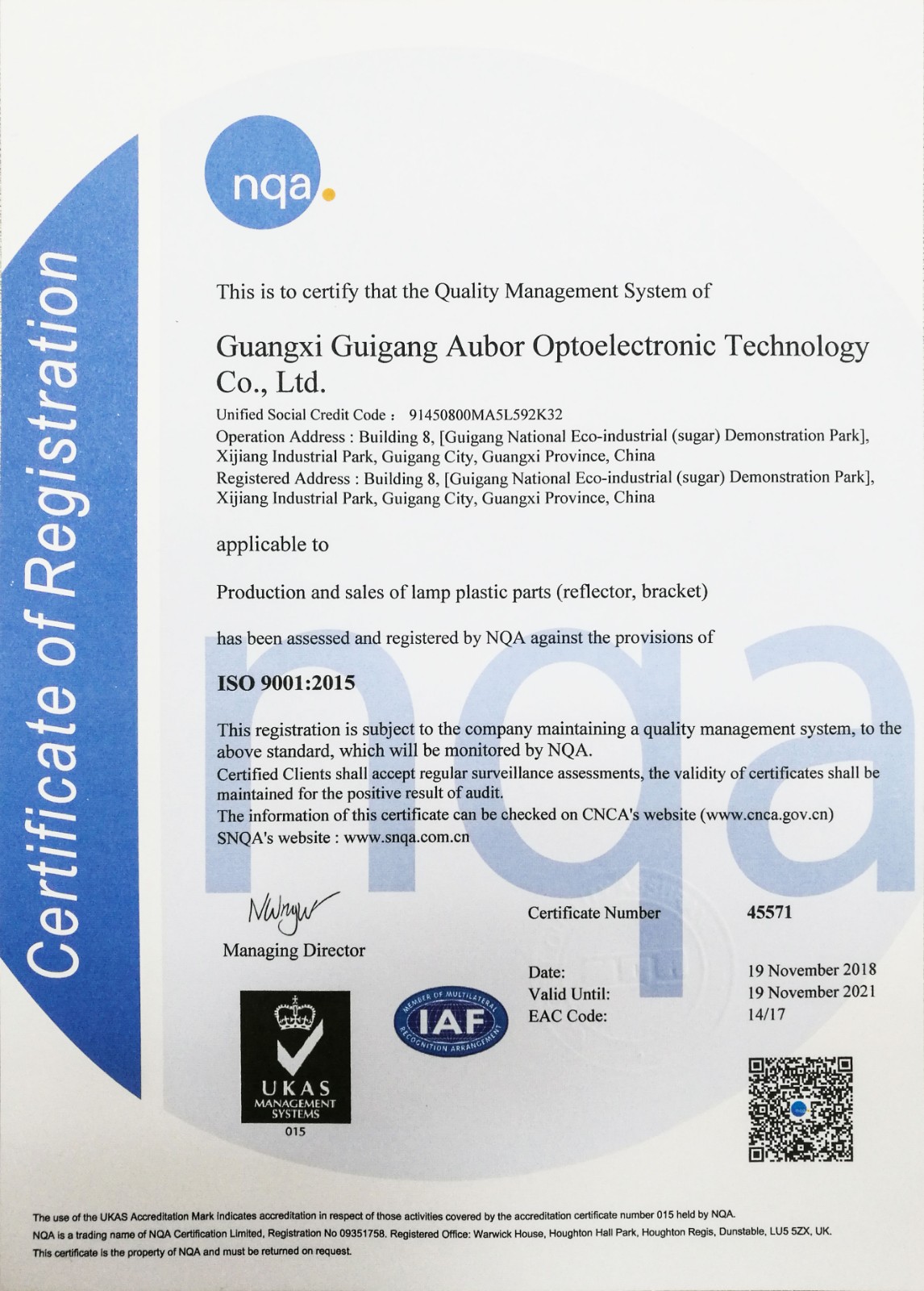 Guigang AUBOR Optoelectronic Technology Co.,Ltd. is located in Guiguang city ,which is a ISO certified factory and follow the management system of IATF16949:2016 strictly.With registered capital of 1.5million RMB,our first factory area is up to 5,000 square meters and second factory building area will be built and finished in 2019,which will be up to 27000 square meters.At present We have 150 employees.AUBOR offer one-stop service from optical simulation test,electronic circuit design,SMT assembly to LED automobile headlamps assembly.