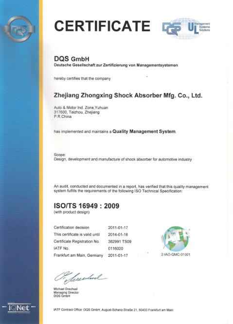 Yuhuan County Zhenxin shock absorber manufacturing Co., Ltd. (Yuhuan County Kanmen Zhongxing Machinery Factory), founded in 1988, is a joint-stock enterprise specializing in the production of shock absorbers. The new factory covers an area of about 38 Mu and a building area of about 22000 square meters. All kinds of equipment are complete, with excellent quality and advanced testing technology. Under strict management system and perfect quality assurance system, all kinds of shock absorbers for cars developed by our factory are complete in varieties, stable in performance, excellent in quality, uniform in surface coating, beautiful in appearance and strong in adhesion, which are deeply loved and praised by users. In order to create famous brand products, leaders of the factory attach great importance to technical progress, new product development, introduction of technical talents and after-sales service, and the scientific management level of the enterprise is constantly improving. The company has passed ISO9001:2000 certification; passed the appraisal of Shanghai Automobile Quality Supervision, inspection and appraisal test institute in 1997; won the title of "trustworthy quality unit of Zhejiang Province in the new millennium" in early 2000; our new products passed the inspection of "shock absorber inspection station of China automobile quality North supervision and inspection Institute" and "Zhejiang Technical Supervision and Inspection Institute" in 2001; many times It has won the provincial new product development award and successively won the "AAA level" of enterprise credit of Zhejiang branch of Agricultural Bank of China. Our belief is to create "first-class employees, first-class environment, first-class reputation, first-class service, first-class products"! The company mainly produces automobile shock absorbers, which has a history of 16 years. It has made great achievements in the domestic shock absorber industry. In recent years, its products are exported to the Middle East, the United States, South Korea and other countries, and it also has a certain market share in the international market. There are more than 400 employees in the factory, including senior engineers, engineers and various technical personnel accounting for 13% of the total. All kinds of shock absorbers for cars are complete in variety, stable in performance, excellent in quality, good in anti vibration performance, uniform in surface coating, beautiful in appearance and strong in adhesion, which are deeply loved and praised by users. In 1997, it passed the appraisal of "Shanghai Automobile Quality Supervision, inspection and appraisal test institute", and won the title of "quality trustworthy unit of Zhejiang Province in the new millennium" at the beginning of 2000. At the beginning of 2001, our new products passed the inspection of "shock absorption inspection terminal of China automobile quality North supervision and Inspection Institute" and "Zhejiang Technical Supervision and Inspection Institute". It has passed the provincial new product technology appraisal for many times, won the new product development award and successively won the "AAA" enterprise credit of Zhejiang branch of Agricultural Bank of China.