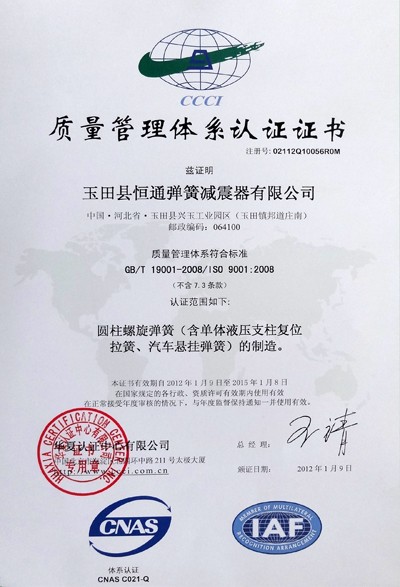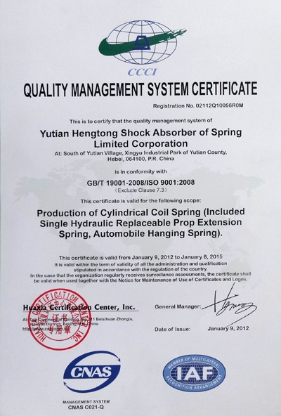 Yutian Hengtong Spring Shock Absorber Co.Ltd. is located in the city of Tangshan, Hebei Province. It lies in the center of Beijing, Tianjin and Tangshan with a very convenient communication. Our company has a land coverage area of over 40,000 square meter, there are total 260 employees including 28 professional technicians and 5 senior engineers. The registered capital is 8.6 million RMB.