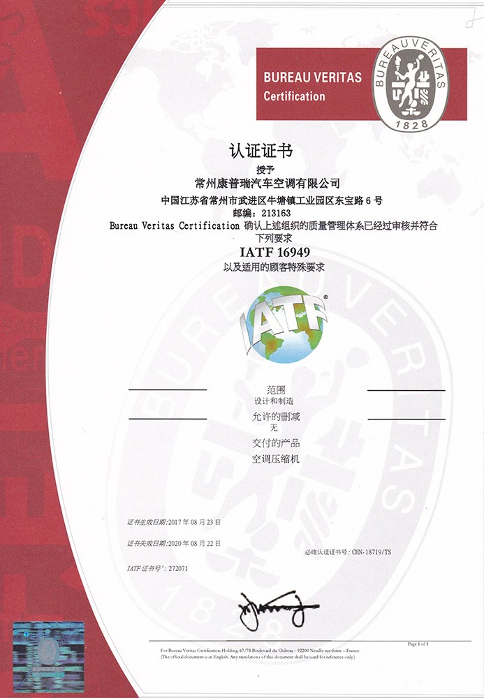 The company has built a rotary leaf type high efficiency and energy-saving automotive air conditioning compressor engineering research center in Jiangsu Province. We have an experienced R&D team in the field of automotive air conditioning compressors. The total R&D engineers and technical engineers have more than 20 years of experience. R&D managers have more than 10 years of industry experience. The provincial engineering research center has performance labs, real-vehicle durability labs, noise labs, and vibration labs. Professional R&D team and hardware facilities can meet the demand for customized product research and development proposed by auto OEMs and auto air-conditioning system manufacturers, and complete customized product design, R&D, sample, mass production and after-sales full-service in a short time; At the same time, the company has established a cooperative relationship with industry and research institutes and Chongqing University, and regularly invited its professor of automotive engineering to our company for technical guidance and support. In January 2018, the core technology has cumulatively applied for 45 patents, including 4 patents for inventions; 35 patents have been granted.