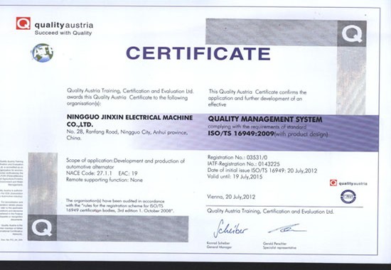 Ningguo Jinxin Electrical Co., Ltd. was founded in September 1992, located in Ningguo City, the ecological city of southeastern Anhui Province with beautiful scenery. As one of the main manufacturers and exporters of automotive generator, rotor, stator and other accessories in China, we have 20 years'experience in developing, developing and producing automotive alternators, and have become the supporting factories of Chery, Geely, BYD, Beiqi Automobile Group and the satisfied suppliers of European and American customers.
