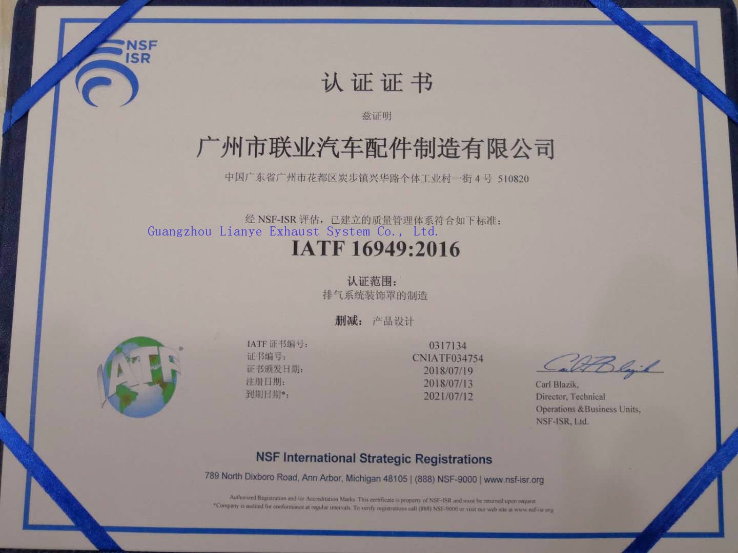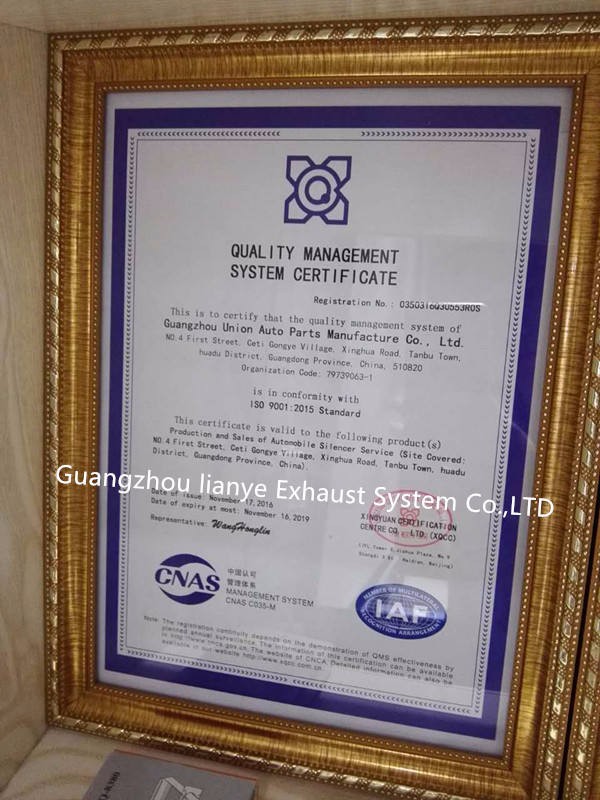 Guangzhou Lianye Exhaust System Co., Ltd. is a manufacturer specialized in the research, development and production of exhaust system products, such as automobile stainless steel performance mufflers, tips, cat-backs and headers.We are located in Guangzhou, with convenient transportation access. All of our products comply with international quality standards and are greatly appreciated in a variety of different markets throughout the world.We are sure that you can get your satisfactory products at competitive prices but good quality from our factory under the cooperation with us.If you're interested in our products, please contact us by e-mail for further information about our products. Your comment on our products and any good advice are very important and useful to our development. We will do our best to support and assist you!